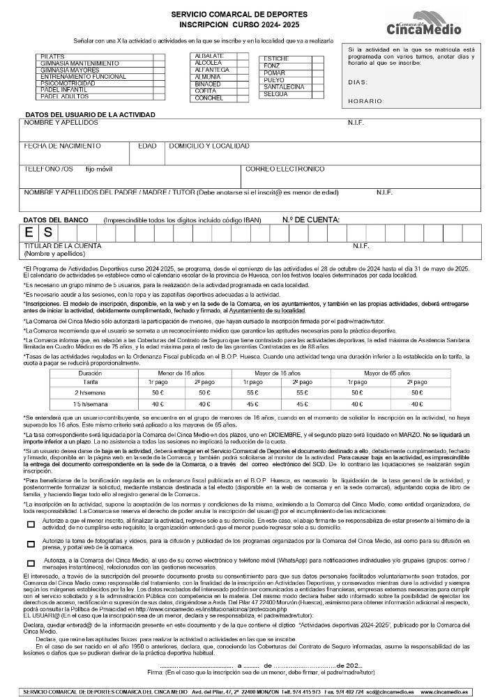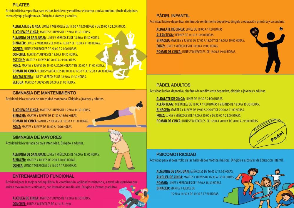 Actividades Deportivas de Comarca del Cinca Medio Whatsapp: Actividades Deportivas de Comarca del Cinca Medio Fecha 07 octubre 2024 Inscripciones en el Ayuntamiento. Actividades Deportivas de la Comarca del Cinca Medio, curso 2024/2025 Galería imágenes cat: Deporte, vaobulcary: 2663117
