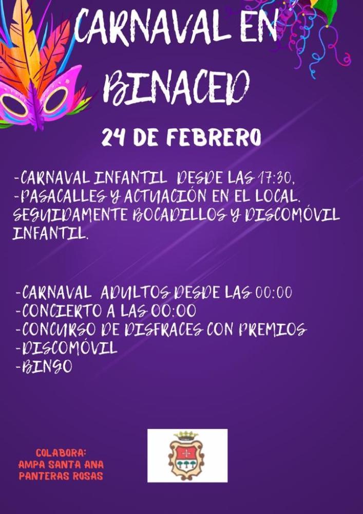 Carnavales en Binaced Whatsapp: Carnavales en Binaced Fecha 20 enero 2024 Día 24 de Febrero El 24 de febrero, carnaval infantil desde las 17:30 h y carnaval de adultos desde las 00:00 h. Con mucha diversión!!! Galería imágenes cat: Eventos y fiestas, vaobulcary: 2663117