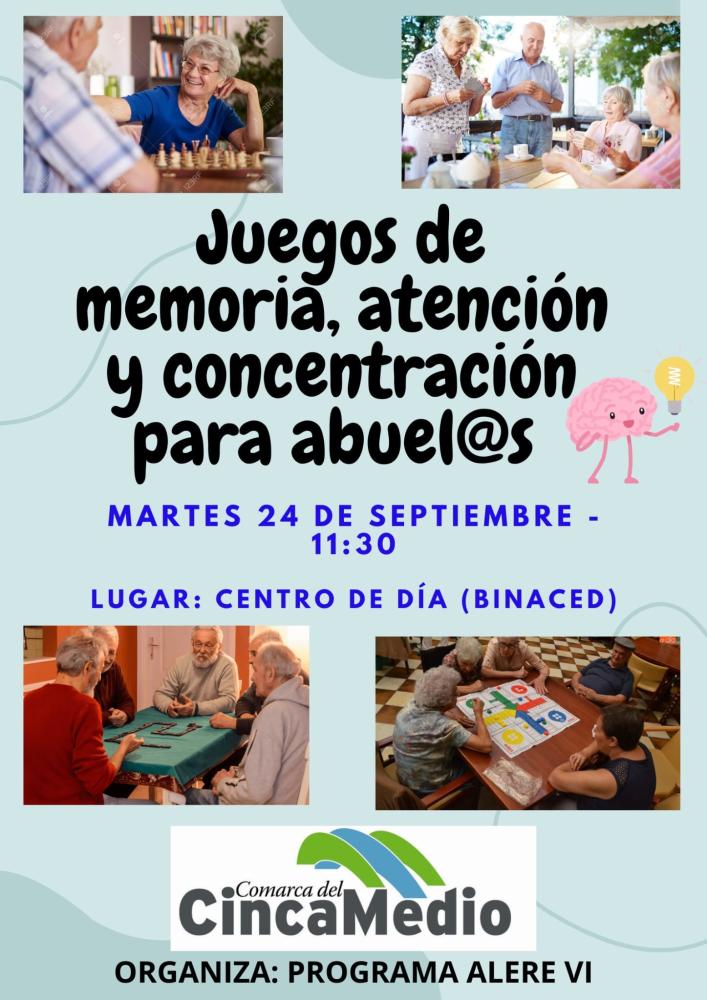 Juegos de atención y memoria para nuestr@s mayores Whatsapp: Juegos de atención y memoria para nuestr@s mayores Fecha 05 septiembre 2024 Actividad para el 24 de septiembre, dirigida a los mayores. Actividad de Comarca del Cinca Medio en el Centro de Día de Binaced. Galería imágenes cat: Eventos y fiestas, vaobulcary: 2663117