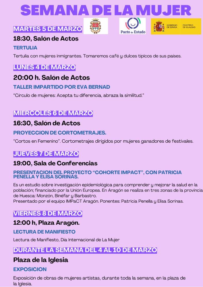 Semana de la Mujer Whatsapp: Semana de la Mujer Fecha 06 marzo 2024 Actos desde el 4 al 10 de Marzo Semana de la Mujer, actos culturales del 4 al 10 de Marzo. Galería imágenes cat: Cultura, vaobulcary: 2663117