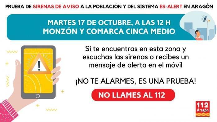 El día 17 de octubre los teléfonos móviles de todos los pueblos de la Comarca recibirán un mensaje de alerta sobre una prueba de envío de Alertas Masivas, los ciudadanos no deben de llamar a ningún servicio de Emergencia.